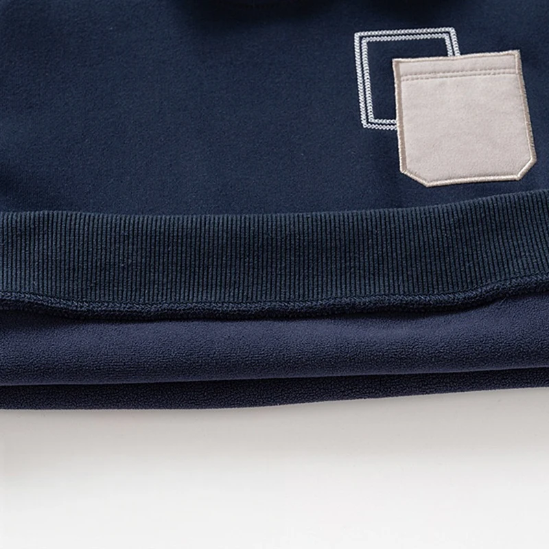 Autumn Winter Ghildren Clothings Boys Layered Fleece Sweatshirt Denim Collar Patch Pocket Warm Pullover Kids Casual Top