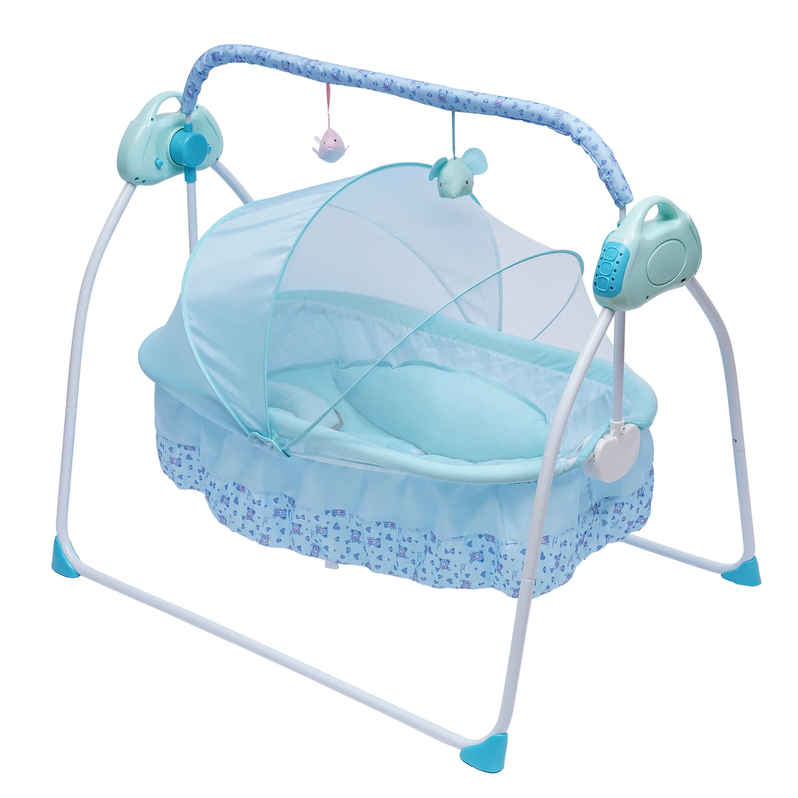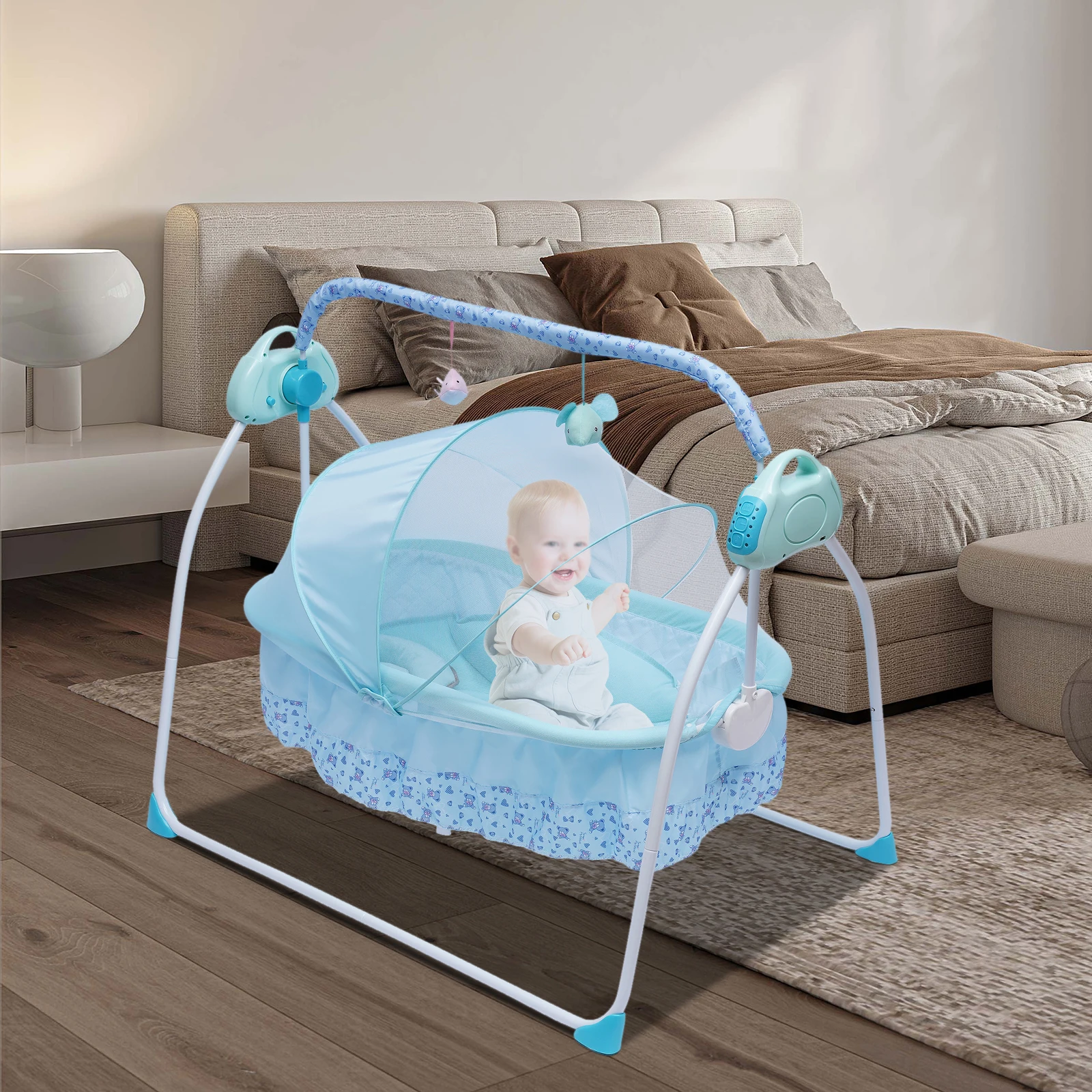 If you are a mother who is tired of coaxing your baby to sleep, quieting your crying baby down, or having little time for yourself, this baby cradle swing will be the good news for you. With its multiple functions, premium materials, high safety, and various control methods, this cradle swing can give your baby a comfortable sleep and a pleasing paradise of playing. Embrace it, and free your hands now!