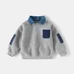 Be the first to review “Boys Layered Fleece Sweatshirt Denim Collar Patch Pocket Warm Pullover Kids Casual Top”